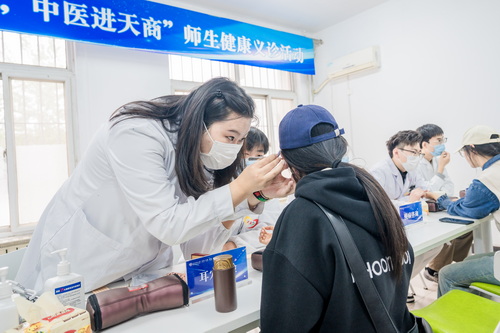 活動當天,學工樓 “一站式”學生社區義診點人頭攢動。來自天津中醫藥大學博碩士服務團的隊員們,為我校師生提供了全方位的健康服務,針灸推拿、脈診舌診、穴位貼敷、耳穴壓豆、健康咨詢,慢性病防治指導……每一項服務都細致入微,活動特別融入“藥食同源”理念,根據個體體質定制個性化食療方案,讓師生切身感受中醫藥文化的實用價值,贏得了師生們的一致好評。