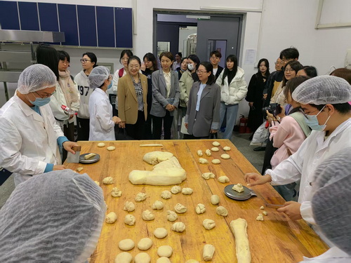 天津中醫藥大學公共衛生與健康科學學院師生參觀并體驗了我校生物技術與食品科學學院烘焙實驗室的陳皮面包制作過程。學術交流時,兩校師生圍繞藥食同源展開深度研討。我校大健康協同創新研究院院長賴長江生、制藥工程系青年教師孫嘉辰以《中藥質量化學—生物評價研究》《多組學整合分析揭示藥用植物生理機制與質量調控》為題,聚焦學術前沿展開深度講解;天津市醫療健康學會健康產業專業委員會主任委員魏洪君則以《“健康中國2030”背景下藥食同源的發展機遇》為題,剖析行業發展趨勢;我校食品科學與工程專業碩士研究生潘杰等4名學生代表,分別展示各自學習領域的研究成果。
