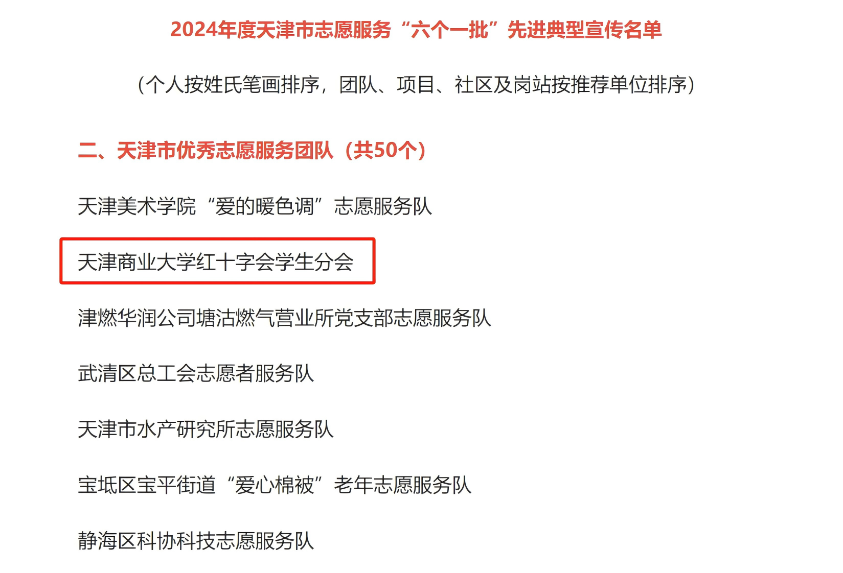 近日,2024年度天津市志愿服務(wù)“六個一批”先進典型名單公布,我校紅十字會學生分會獲評“天津市優(yōu)秀志愿服務(wù)團隊”榮譽稱號。