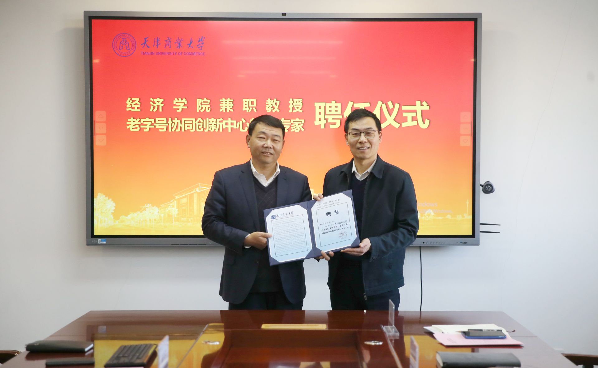 張亞為傅子恒頒發了天津商業大學經濟學院兼職教授、老字號協同創新中心特聘專家聘書。