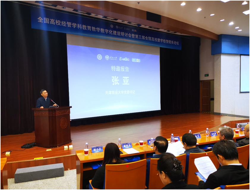 11月9日,由中國高等財經教育分會指導,南開大學經濟學院、中國高校財經慕課聯盟主辦,全國高校經管學科教育教學數字化建設研討會暨第三屆全國高校數字經管院長論壇在南開大學省身樓報告廳舉行。應中國高等財經教育分會邀請,校黨委書記張亞出席研討會,并作題為“財經教育數智化變革的若干思考”的報告。