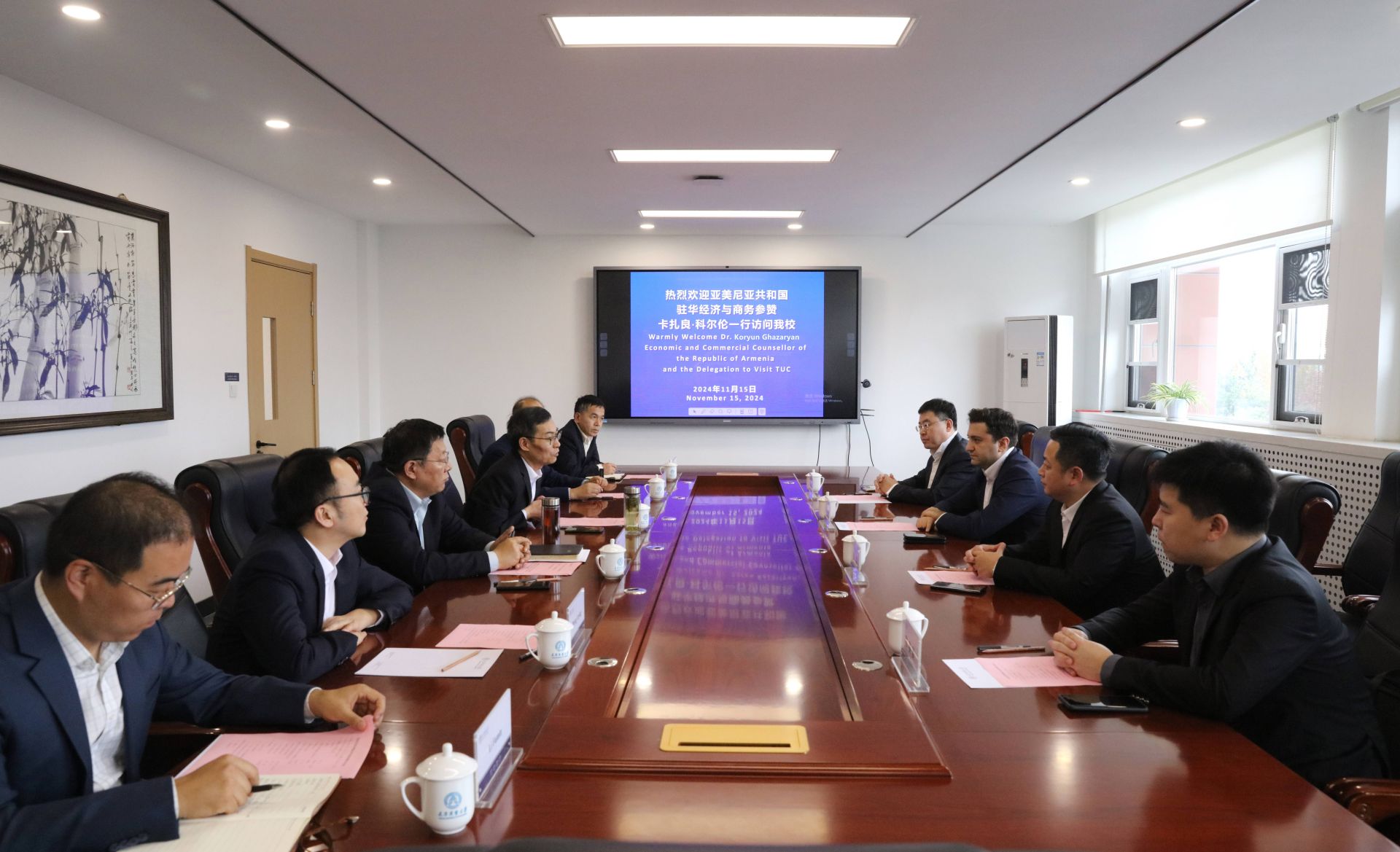 11月15日下午,亞美尼亞共和國駐華使館經濟與商務參贊卡扎良·科爾倫、亞美尼亞商會代表楊軍一行4人訪問我校。校黨委書記張亞、副校長齊恩平出席。天津伍創電子商務有限公司董事長李富民校友應邀參會。老字號協同創新中心、科研處、國際交流處主要負責同志參加。