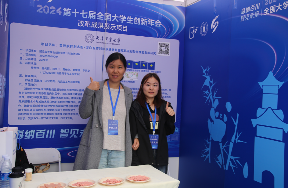 11月8日至11月11日,以“海納百川·智見未來”為主題的第十七屆全國大學生創新年會(以下簡稱“國創年會”)在四川大學舉辦。我校國家級“大創計劃”項目——“黃原膠抑制多酚-蛋白互作對肌原纖維蛋白基乳液凝膠特性的影響研究”成功入選本屆年會。