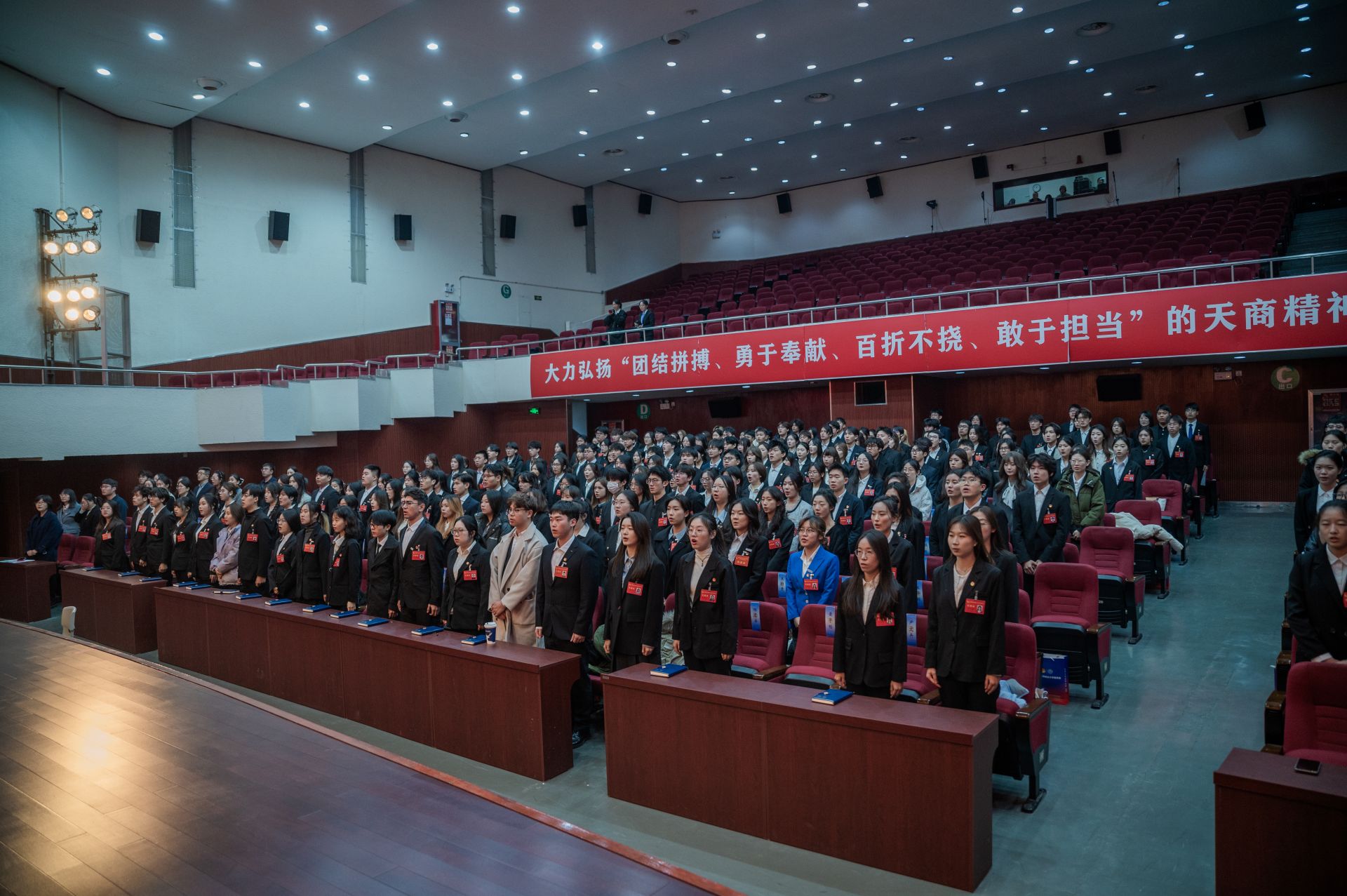 11月30日,天津商業大學第十七次學生代表大會、第七次研究生代表大會在科學會堂召開。大會的主題是高舉習近平新時代中國特色社會主義思想偉大旗幟,全面貫徹落實黨的二十大和二十屆三中全會精神、全國教育大會精神,深入學習貫徹落實習近平總書記關于青年工作的重要思想,堅持黨的領導,把握時代主題,勇于自我革命,服務同學成長,團結帶領廣大同學共同成長為具有高度社會責任感、深厚商學素養的復合型應用型創新創業人才,在全面建設社會主義現代化國家、全面推進中華民族偉大復興的歷史進程中挺膺擔當、團結奮斗。