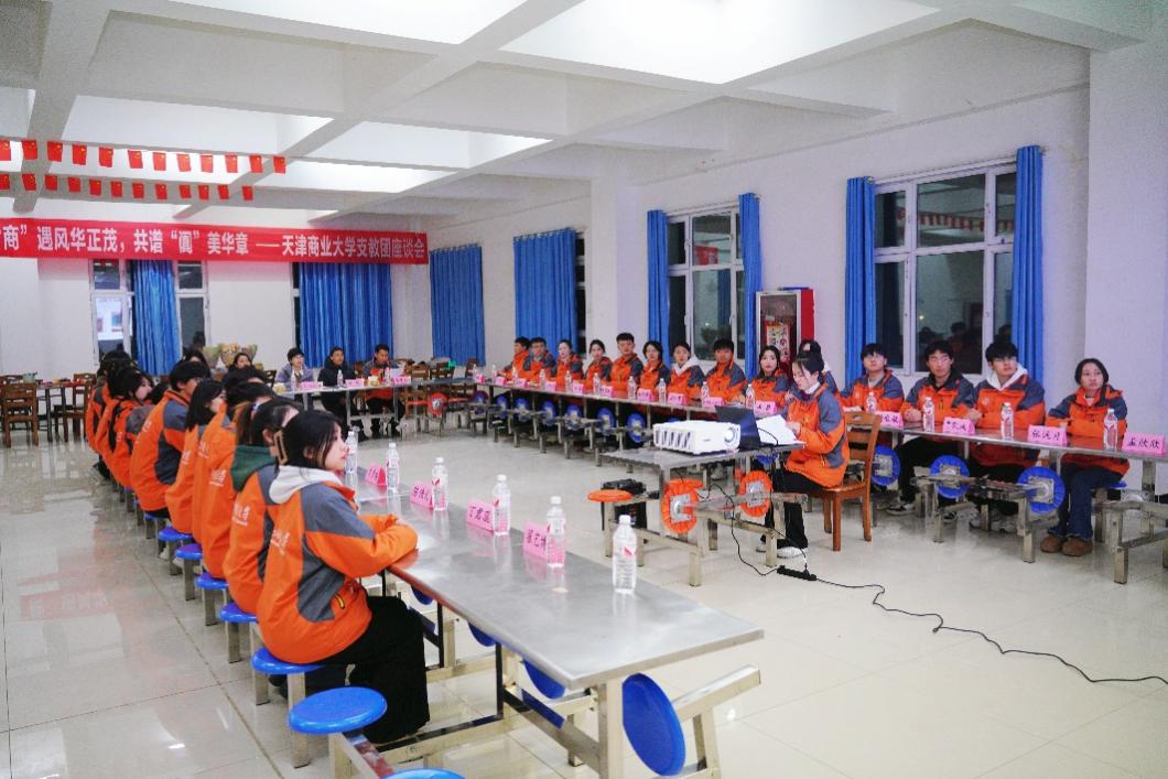 支教師生代表圍繞支教初心、暖心故事、感悟體會,以及參與的塔克拉瑪干沙漠鎖邊工程建設等方面進行了匯報交流。師生們紛紛表示,領導老師從四千多公里遠的學校到于田慰問感到特別親切和激動,今后將牢記囑托,踐行天商“篤學 弘毅 明德 濟世”的校訓精神,繼續積極投入支教工作,用實際效果展現責任與擔當。