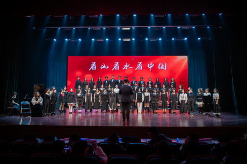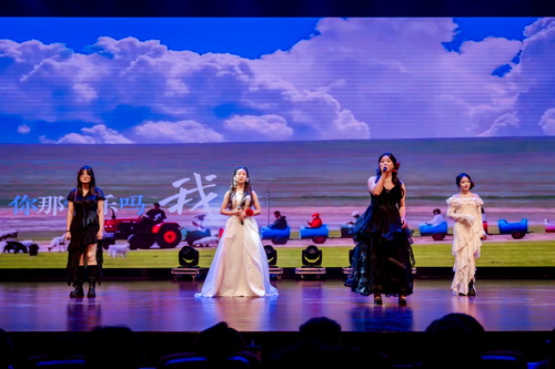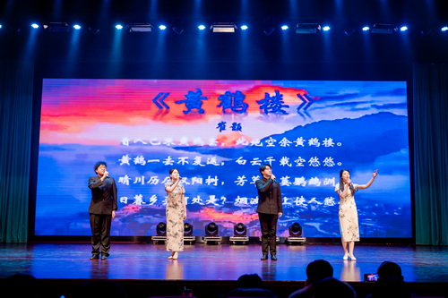 第三篇章中,朗誦《月光下的中國》《唐詩里的四大名樓》,鏗鏘有力、聲情并茂。舞蹈《淡妝濃抹總相宜》以優美的舞姿詮釋著生命的蓬勃與活力。歌曲《鮮花》熱情洋溢,彰顯了天商學子的青春熱血。大合唱壓軸出場,合唱團演唱了《看山看水看世界》《牛仔很忙》,以飽滿的歌聲、富有情趣的表演,將現場氣氛點燃。