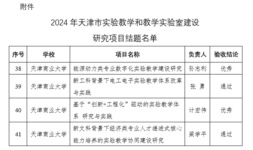 近日,天津市教委公布了2024年天津市實驗教學和教學實驗室建設(shè)研究項目結(jié)題結(jié)果。我校立項的“基于‘創(chuàng)新+工程化’驅(qū)動的實驗教學體系研究與實踐”“能源動力類專業(yè)數(shù)字化實驗教學建設(shè)研究”“新工科背景下電工電子實驗教學體系改革與實踐”和“新文科背景下經(jīng)濟類專業(yè)人才遞進式核心能力培養(yǎng)的實驗教學協(xié)同建設(shè)研究”4個項目全部順利通過結(jié)題驗收,其中計宏偉教授主持的“基于‘創(chuàng)新+工程化’驅(qū)動的實驗教學體系研究與實踐”和孫志利教授主持的“能源動力類專業(yè)數(shù)字化實驗教學建設(shè)研究”項目驗收結(jié)論為“優(yōu)秀”,優(yōu)秀項目數(shù)量在全市高校中位列第一。