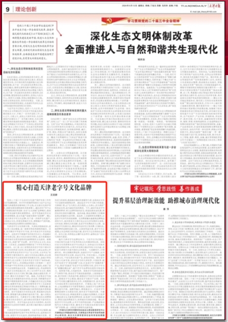 9月13日,《天津日報(bào)》(理論創(chuàng)新版)刊發(fā)我校馬克思主義學(xué)院王迎新副教授理論文章《精心打造天津老字號文化品牌》。文章指出,老字號是城市歷史文化的重要載體,是文化遺產(chǎn)創(chuàng)新發(fā)展的“活招牌”。精心打造天津老字號文化品牌,對于進(jìn)一步保護(hù)文化遺產(chǎn),弘揚(yáng)商業(yè)文化,傳承發(fā)展城市文化,展現(xiàn)城市氣質(zhì)風(fēng)貌,推動天津高質(zhì)量發(fā)展具有重要現(xiàn)實(shí)意義。