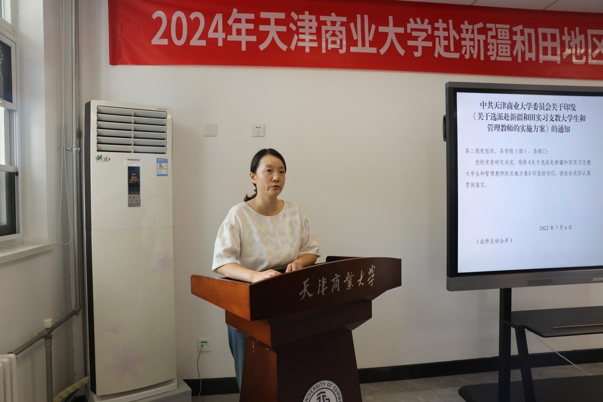 9月13日下午,天津商業大學赴新疆和田地區實習支教團出征儀式在行政樓多功能會議室舉行。校黨委副書記王立云出席并向實習支教團授旗。黨委學工部、團委相關負責同志,相關學院黨委副書記,2023年實習支教團師生代表和2024年實習支教團全體師生參加。
