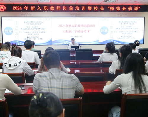 為深入學習貫徹習近平新時代中國特色社會主義思想和黨的二十大精神,學習貫徹習近平總書記在全國教育大會上的重要講話精神和全國教育大會精神,增強新入職教師愛校如家的歸屬感和教書育人的使命感,9月25日下午,學校在4號教學樓404教室舉行2024年新入職教師崗前培訓暨校長“師德必修課”。校黨委副書記、校長葛寶臻以“踐行教育家精神,做新時代‘四有’好教師”為題為新入職教師講授師德必修課。校內各部門近80位新入職教師參加。