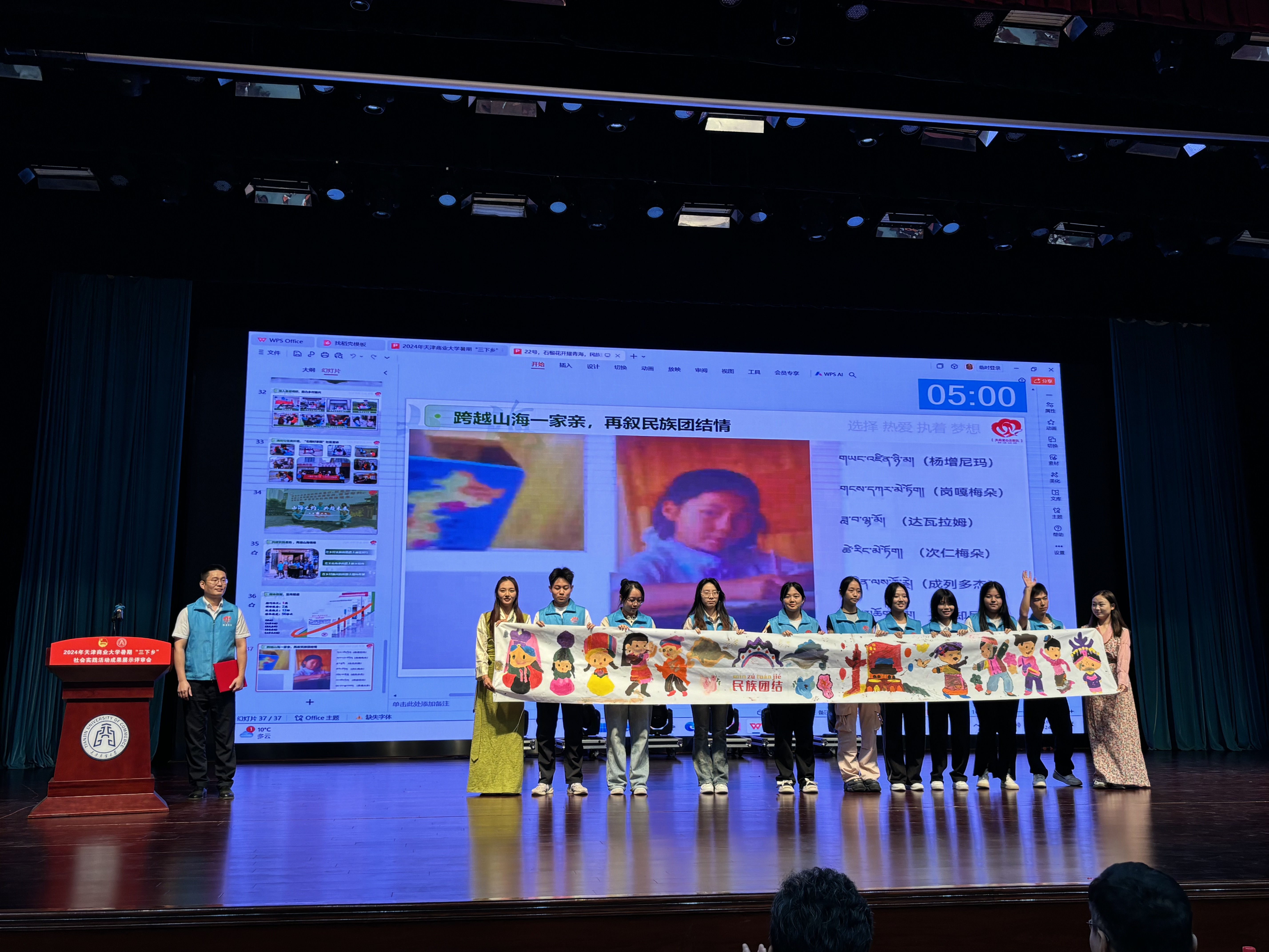 會上,34支重點實踐團隊以PPT現(xiàn)場匯報為主,結(jié)合短視頻播放、情景劇表演、文創(chuàng)產(chǎn)品展示等豐富多彩的匯報形式,將暑期“三下鄉(xiāng)”社會實踐活動內(nèi)容和成果進行了生動地展示和分享,得到評委和現(xiàn)場觀眾的一致認可。