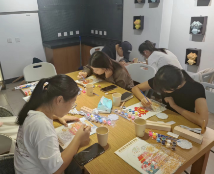 黨委學工部在“弘毅”勞動坊組織開展“國泰民安,青春告白”掐絲琺瑯玻璃畫手工制作活動,各學院學生代表在民俗文化弘揚社的帶領下進行手工制作,在一筆一畫中勾勒出對祖國的深情告白。活動現場,同學們觀看掐絲琺瑯非遺技藝紀錄片,制作掐絲琺瑯玻璃畫小夜燈,通過勾畫線稿、掐絲填色、風干安裝等步驟,繪制出“紅星閃閃”“我的中國心”“破浪紅船”等圖案的作品,表達對祖國的深沉熱愛和美好祝愿。