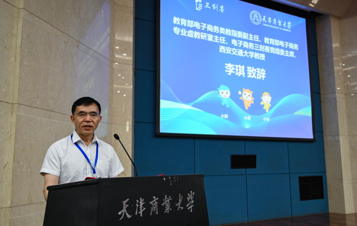 李琪教授代表主辦方致辭,他向全體參賽師生介紹了三創賽的發展歷程、辦賽意義及特點價值,鼓勵選手們賽出風格、賽出水平,對承辦單位天津商業大學的領導、老師和志愿者們的大力支持和辛勤努力表示感謝。