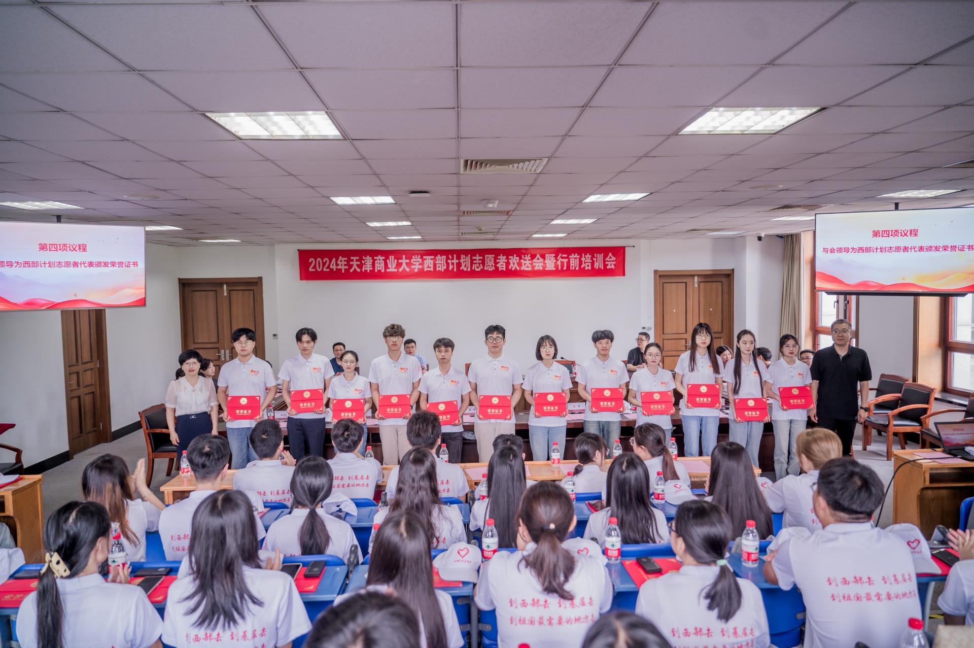 會上,與會領導為西部計劃志愿者代表頒發優秀畢業生榮譽證書,全體2024年西部計劃志愿者莊嚴宣誓。