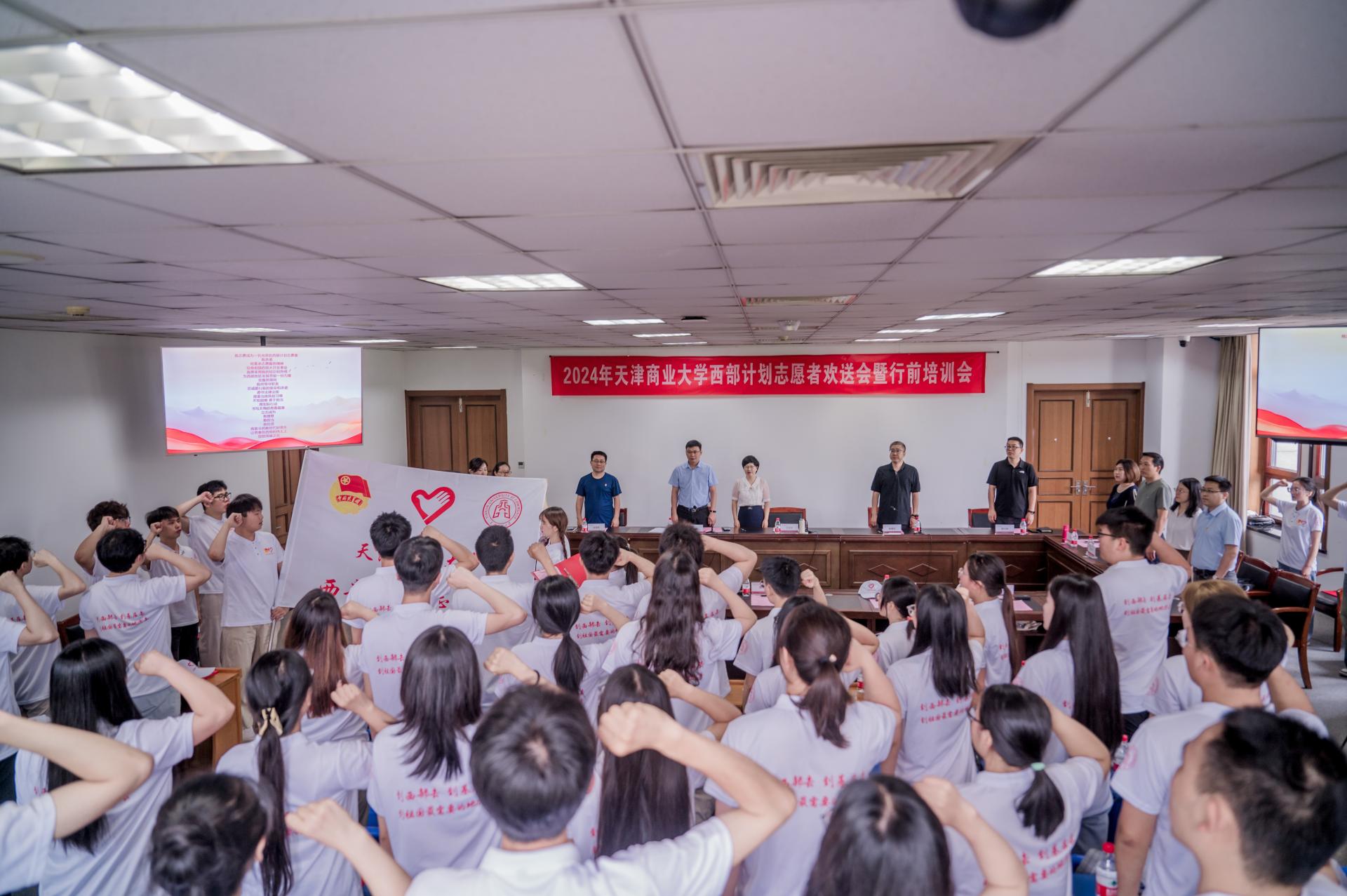 王立云對即將出征的全體志愿者提出殷殷囑托和希望:一是堅定理想信念,實現人生價值。希望同學們用腳步丈量中國大地,用實踐感應時代脈搏,在遼闊美麗的西部實現自身價值,書寫人生最珍貴和難忘的青春故事。二是發揮專業所長,練就過硬本領。希望志愿者們積極融入新環境、適應新生活、展現新作為,主動立足西部發展需要、發揮自身優勢,熱愛工作崗位,在做好每一件小事、完成每一項任務、履行每一項職責中不斷成長,體會責任與被需要的意義和快樂。三是弘揚奮斗精神,勇擔青春使命。西部地區是青年學子展示才華、干事創業的廣闊平臺,作為新時代的強國一代,希望志愿者們胸懷“國之大者”,知行合一、腳踏實地、在服務基層中擔當歷練、奉獻力量,將遠大理想抱負、深厚家國情懷、拼搏奮進之力揮灑在西部基層一線,彰顯出天商學子的使命擔當。