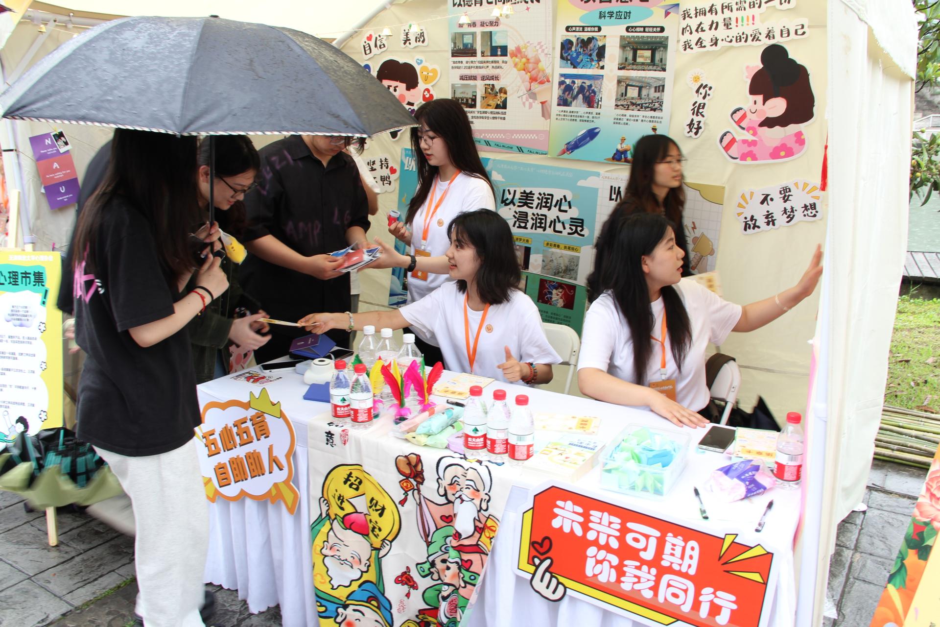 天商心協圍繞“五心五育,自助助人”主題精心設計活動環節,創新心育形式,現場開展心理互動游戲,制作天商標志性建筑印章,主題活動拍照打卡,品嘗“天津三絕”之一的桂發祥十八街麻花等活動。我校展演活動共吸引1000余人參加,贏得活動主辦方和在場師生的一致好評,并被央視《朝聞天下》節目、團中央權益部官方微信號等多家媒體報道。