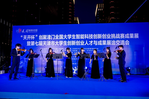 此場音樂會為“天開杯”創聚津門全國大學生智能科技創新創業挑戰賽總決賽列活動之“8場天開音樂會”首場。市教育兩委學生處處長楊明,校黨委副書記、校長葛寶臻,校黨委副書記王立云以及我校師生代表、現場觀眾朋友們共同觀看了演出。