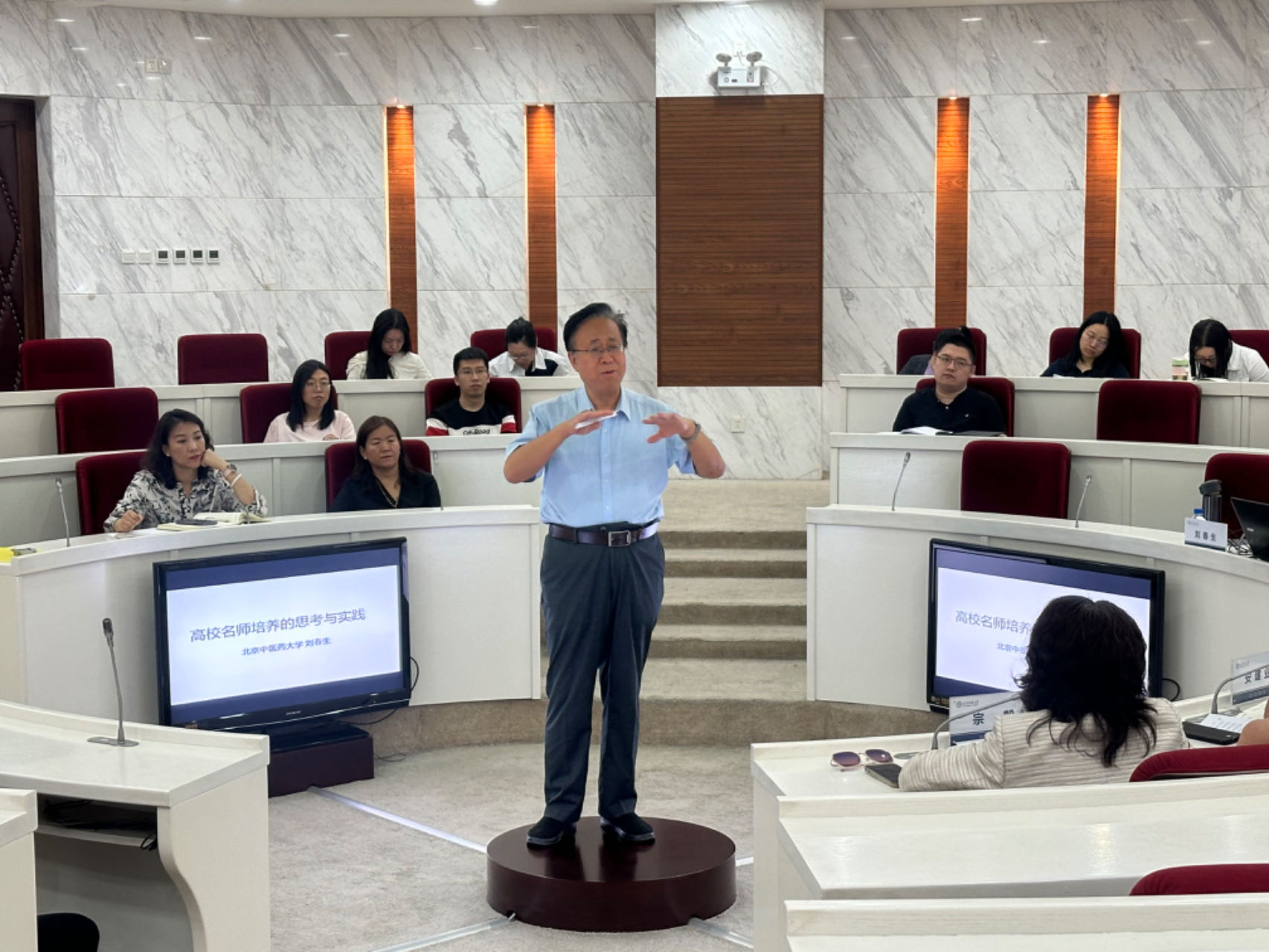 5月15日上午,全國模范教師、北京中醫藥大學教授劉春生應邀做客學校“天商大健康名家講堂”作“高校名師培養的思考和實踐”主題講座。活動由生物技術與食品科學學院、大健康協同創新研究院、教師發展中心與研究生處聯合舉辦,旨在大力弘揚教育家精神,加強師德師風建設,提升教師科學素養和教學能力。大健康協同創新研究院、教師發展中心、研究生處相關負責同志及各學院青年教師、學科帶頭人和系主任代表40余人參加講座。