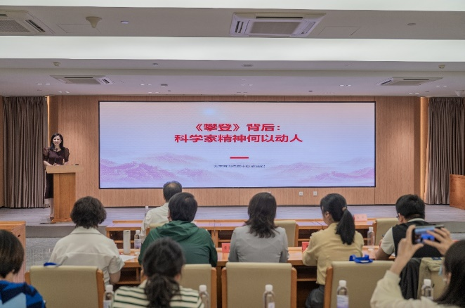 在專家報告環節,海河傳媒中心教育頻道主持人、播音指導張麗君和天津師范大學科技處科長劉通交流分享了科學家精神的傳承與教育經驗。