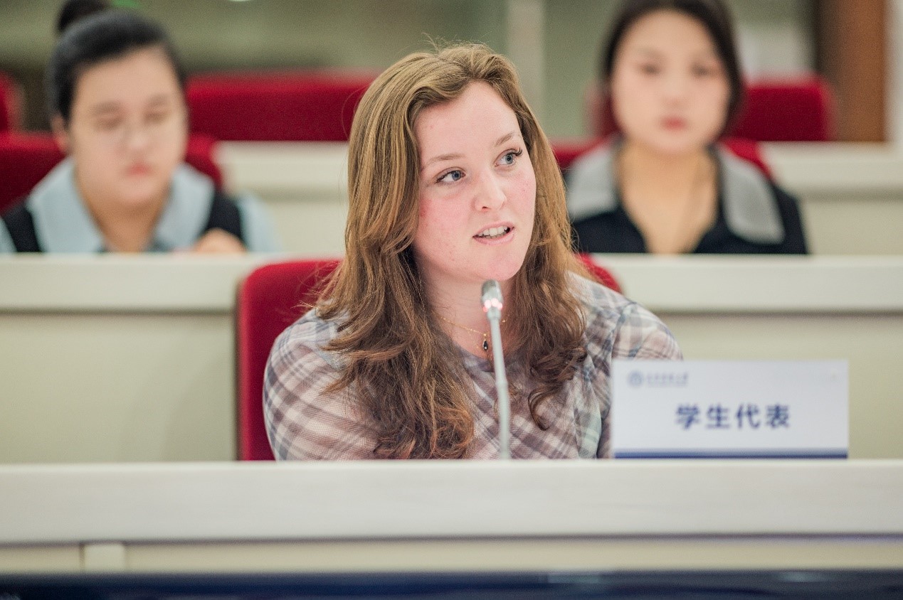 英國學生代表Tatiana Scott Jones在儀式上發表感言,她表示能夠獲得這次來華研學的機會倍感榮幸,內心充滿珍惜與期待。她承諾將以最大的熱情投入每一項研學活動,用心感受中國文化的獨特魅力。同時,她特別提到要將這次中國之行的所見所聞、所思所感完整地帶回英國,與更多同齡人分享這段珍貴的跨文化體驗,讓中英友誼的種子在青年一代心中生根發芽。