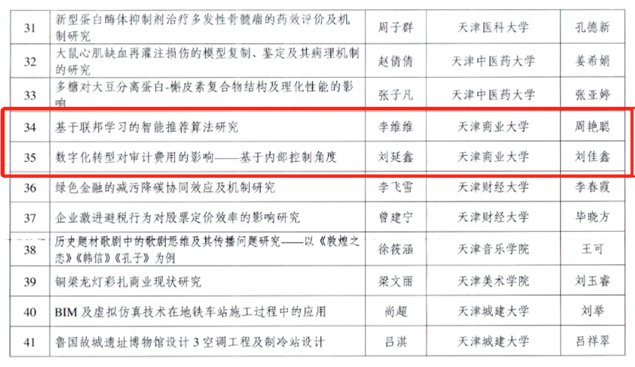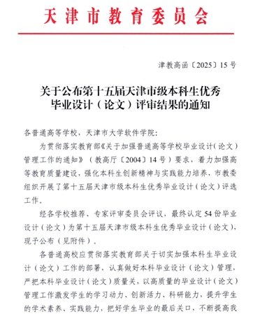 近日,天津市教委公布了第十五屆天津市級本科生優秀畢業設計(論文)評審結果,我校信息工程學院電子商務專業2003班李維維同學、會計學院財務管理專業2002班劉延鑫同學撰寫的論文獲評第十五屆天津市級本科生優秀畢業設計(論文)。