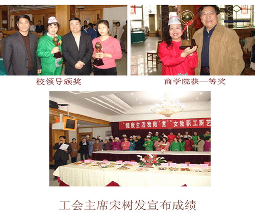 這是校工會首次舉辦廚藝大賽,全校各分會都派出了最強陣容,不僅有女教職工,也吸引了許多男教工前來助陣。大家在賽前研究制定菜譜,切磋烹飪技術,了解食物營養搭配的科學知識,為比賽做了充分的準備。本次比賽要求在限定時間內完成“規定菜”和“創意菜” 2 種菜品的烹制。賽場氣氛熱火朝天,人聲鼎沸,十分熱烈,從洗菜、切菜、配菜到煎、炒、烹、炸,大家忙得不亦樂乎。當一盤盤色香味俱全的菜肴呈現在桌上時,讓大家贊不絕口,垂涎三尺。評委分別從色、香、味、形、刀工、創意、營養搭配、家庭實用等方面進行評分。最后,商學院獲得一等獎;后勤產業,飲食集團聯隊,國際教育與交流、 TF 合作學聯隊獲得二等獎;生食學院、機械學院、機關一與機關二聯隊、公共管理學院、高繼學院聯隊、外語學院獲得優秀獎。
