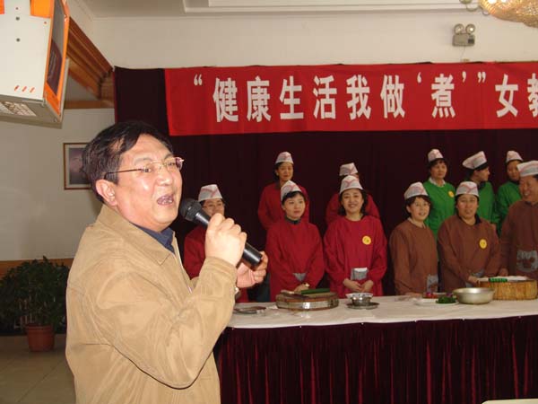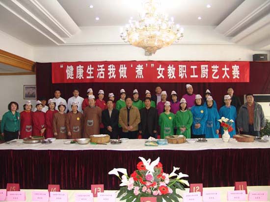 春意融融,其樂融融。3 月16 、17 日,校工會在瑞德廈餐廳舉辦了別開生面的“健康生活我做‘煮’” 女教職工廚藝大賽。這是慶祝“三八”節系列活動之一。市教育工會主席李子星,我校黨委副書記楊萬義、史習紅在百忙中參加了活動,并為獲獎隊頒發了獎杯。校工會副主席宋樹發、商學院旅游管理系高級實驗師陸宏禮等 7 位評委擔當大賽評比工作。女工委員會主任衛弘主持了比賽。來自全校 26 個分會組成的 17 個團隊,51 名選手進行了比賽,近百名教職工到場觀看。