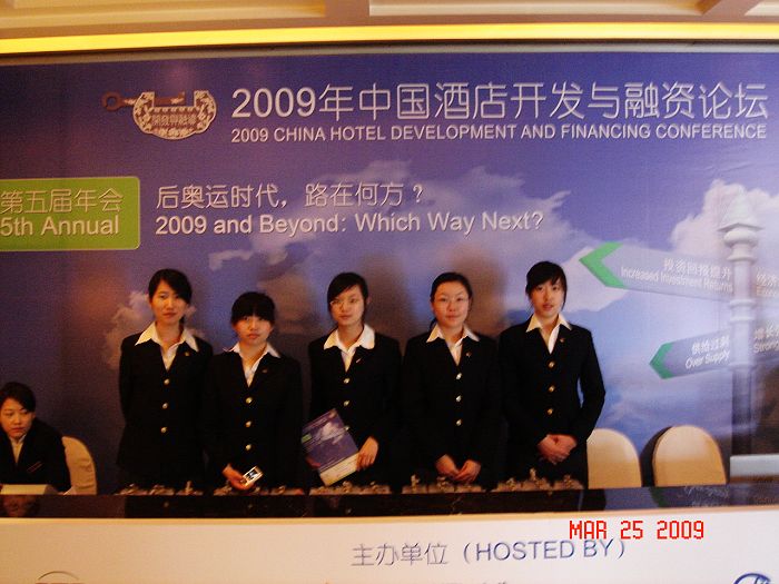 3 月 25 日 至 27 日,我校 TUC-FIU 合作學院十二名同學赴北京香格里拉飯店參加了 Horwath HTL (浩華管理顧問集團公司) 2009 年中國酒店開發與融資論壇并提供會議服務。本次會議為該論壇的第五屆年會,由 Horwath HTL (浩華管理顧問集團公司)、 STR GLOBAL 以及中國旅游飯店業協會共同主辦。 “ 中國酒店開發與融資論壇 ” 作為中國酒店業論壇的先驅,致力于探討和洞察中國酒店業發展的最新動態和趨勢。會議吸引了來自世界各地的幾百位與會嘉賓,包括業主、開發商、酒店管理公司總部人員、業界專業人士、投資銀行和金融機構、以及新聞媒體等。 會議期間, TUC-FIU 合作學院的同學們分別參與了前期文件準備、前臺登記咨詢服務、會議進程支持、問詢臺服務、嘉賓迎送禮儀等活動。同學們認真的服務態度和良好的專業素質推動了本次會議的順利進行,受到了主辦方和與會嘉賓的高度贊揚。通過本次會議服務,同學們對酒店行業的現狀和未來趨勢有了更深一步的了解,與酒店高級管理人員也取得了良好的溝通,為今后的酒店業專業課程的學習和實踐打下了堅實基礎。