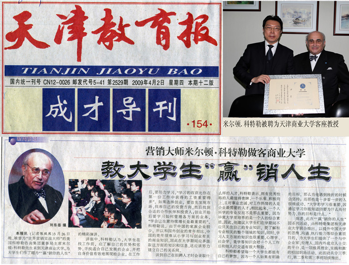《天津教育報》報道“營銷大師米爾頓·科特勒做客商業(yè)大學 教大學生'贏'銷人生”