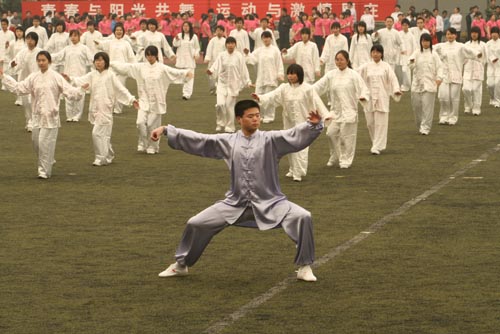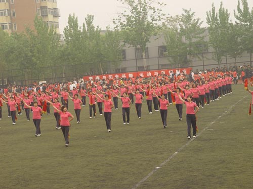 開幕式上,由二級學院組成的12個方隊進行了健美操表演,武術教學班的200學員進行了教學成果展示表演,200 名女教職工進行了“木蘭雙環操”表演,150 名健美操學員進行了教學成果展示匯報。