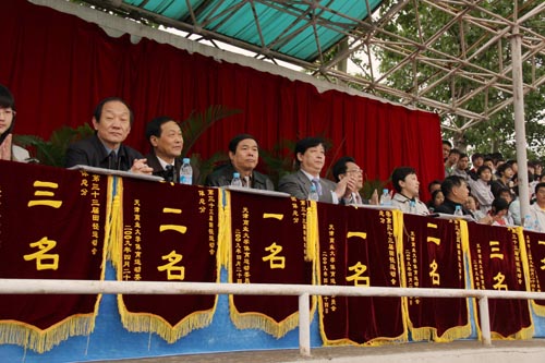 我校第33屆學生、11屆教職工田徑運動會于4月24日上午8時在田徑運動場隆重舉行。學校領導陳學奇、劉書瀚、楊萬義、史習紅、魏胤亭、馬三津、楊明書等出席了開幕式。