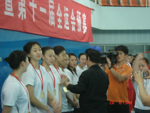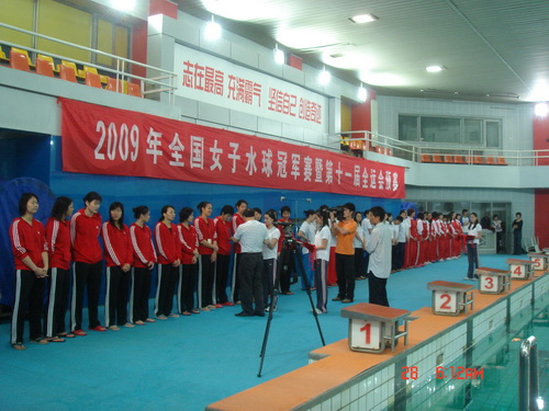 ??4月25日,在全國女子水球冠軍賽暨全運會預賽中,我校女子水球隊代表天津市隊參加了在天津游泳館舉行的比賽。
