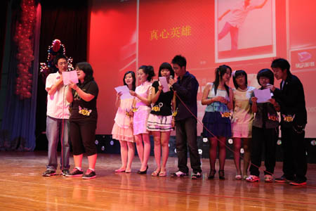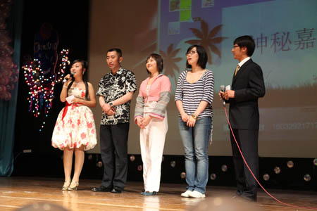 5月18日晚,“聲動天商”——首屆校園 DJ 嘉年華決賽在科學會堂舉行。校黨委宣傳部副部長張克明,廣播臺指導教師柴桐、星海藝術團指導教師嚴慧菁出席活動。天津人民廣播電臺交通臺“ 1068 夜航班”節目主持人王琳、文藝臺主持人浩然、慕容應邀參加活動并與校團委指導教師和校廣播臺高年級播音共同擔任評委。當晚,10 位入圍決賽的選手經過情景 DJ 秀、才藝展示和現場配音三個環節的激烈角逐,最終來自機械工程學院機械設計專業 07 級學生李然獲得冠軍。特別是三位電臺主持人的現場點評和精彩示范把現場氣氛推向高潮。