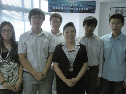 張俊芳副市長與王道宏創建的家速購電子商務有限公司和潘鵬同學創建的鵬遠華典網絡技術有限公司的同學們合影