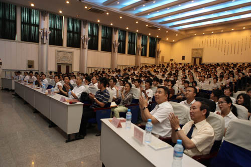 劉書(shū)瀚校長(zhǎng)首先向應(yīng)邀前來(lái)參加此次經(jīng)驗(yàn)交流大會(huì)的成功企業(yè)家代表及新聞媒體的朋友們表示歡迎,向勇于創(chuàng)業(yè)并在創(chuàng)業(yè)中取得突出成績(jī)的學(xué)生表示祝賀。他說(shuō),此次由教務(wù)處承擔(dān)主辦的 2009 年學(xué)生“創(chuàng)業(yè)之星”經(jīng)驗(yàn)交流大會(huì)對(duì)于學(xué)校實(shí)踐辦學(xué)指導(dǎo)思想、落實(shí)人才培養(yǎng)方案具有特殊的意義。隨后他還結(jié)合當(dāng)前高等教育發(fā)展趨勢(shì)、國(guó)外發(fā)達(dá)國(guó)家開(kāi)展創(chuàng)業(yè)教育,培養(yǎng)創(chuàng)業(yè)型人才的成功經(jīng)驗(yàn)及學(xué)校三十年辦學(xué)經(jīng)驗(yàn)指出: 主動(dòng)適應(yīng)社會(huì)需求,培養(yǎng)商學(xué)素養(yǎng)與專業(yè)能力結(jié)合、知識(shí)學(xué)習(xí)與實(shí)踐能力并重、誠(chéng)信做人與創(chuàng)新能力兼?zhèn)涞膹?fù)合型創(chuàng)業(yè)型應(yīng)用人才 是我校辦學(xué)指導(dǎo)思想的重要精神;其次,作為天津商業(yè)大學(xué)培養(yǎng)創(chuàng)業(yè)人才,有著必然性、必要性和可能性,一方面在經(jīng)濟(jì)轉(zhuǎn)型的背景下,新型高學(xué)歷企業(yè)家不斷出現(xiàn),對(duì)當(dāng)代大學(xué)生產(chǎn)生了一定的示范效應(yīng),另一方面嚴(yán)峻的就業(yè)形勢(shì)及大學(xué)生創(chuàng)業(yè)教育的不斷開(kāi)展,大學(xué)生的創(chuàng)業(yè)熱情達(dá)到一個(gè)新的高度;第三,在機(jī)遇與挑戰(zhàn)、成功與失敗面前,更需要知識(shí)、眼界、判斷和勇氣,要經(jīng)得起挑戰(zhàn)與挫折。他希望同學(xué)們勤奮學(xué)習(xí),認(rèn)真規(guī)劃自己的職業(yè)生涯,在大學(xué)生中產(chǎn)生更多具有扎實(shí)的專業(yè)知識(shí)、開(kāi)闊的眼界、準(zhǔn)確的判斷能力和勇氣的成功企業(yè)家。