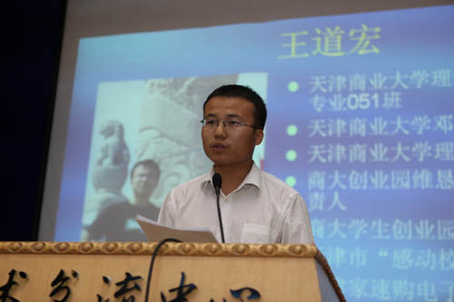 理學(xué)院 05 級(jí)數(shù)學(xué)與應(yīng)用數(shù)學(xué)專業(yè)的王道宏同學(xué)做題為《走出自己的創(chuàng)業(yè)之路》演講