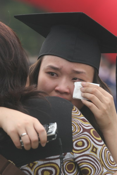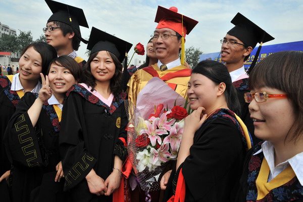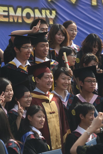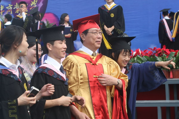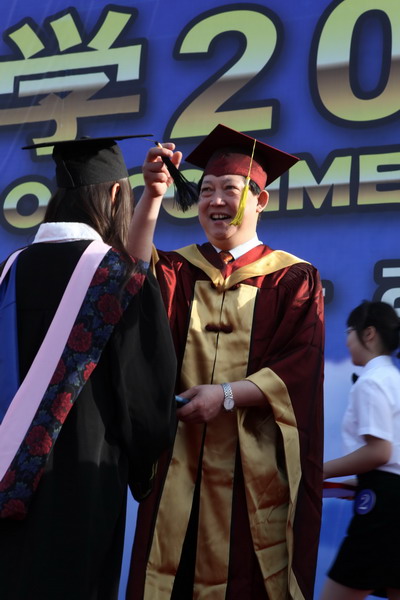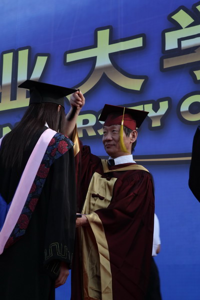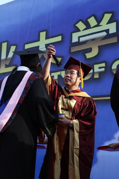 2937 名畢業生身著學位服參加畢業典禮,23 位導師代表為每名畢業生頒發畢業證書和學位證書,撥流蘇,并和他們一一合影留念,祝賀他們完成學業,即將奔赴新的工作崗位。歷時兩個半小時的頒證儀式,始終沉浸在隆重、熱烈、和諧的氣氛中。畢業生興奮的歡呼聲和高高拋向天空的學位帽,寄托了莘莘學子內心成功的喜悅和對未來人生的無限向往。