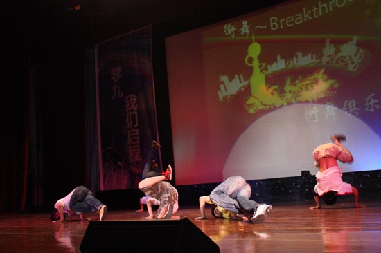 大一時(shí)的學(xué)生們朝氣蓬勃,就如梁赫喬、黃金演唱的歌曲《魔力》那般讓人著迷,也像由崔向征和李進(jìn)陽(yáng)表演的相聲《我是研究生》那樣對(duì)未來(lái)豪情萬(wàn)丈,充滿向往。在一組歌曲聯(lián)唱《專注》、《我們都是好孩子》、《越長(zhǎng)大越孤單》后我們開(kāi)始突破自我的大二生活。由街舞俱樂(lè)部帶來(lái)的《 Breakthrough 》,充分展現(xiàn)了大二生活的活力與激情。在表演結(jié)束后,歌曲聯(lián)唱《光陰的故事》、《睡在我上鋪的兄弟》,旋律舒緩、款款深情,告訴我們大學(xué)生活中濃濃的同窗之情值得我們回憶。小品《大學(xué)回想曲》以幽默的語(yǔ)言講述了每個(gè)人在大學(xué)生活中經(jīng)歷的點(diǎn)點(diǎn)滴滴。在經(jīng)歷了大三、大四的成長(zhǎng)后,每個(gè)人都希望迫切實(shí)現(xiàn)心中的理想,而十一位赴西部志愿者正是用行動(dòng)實(shí)現(xiàn)了自己的夢(mèng)想。在晚會(huì)上,他們表達(dá)了對(duì)母校的感謝和祝福,并演唱歌曲《第一時(shí)間》,臺(tái)下同學(xué)熱情地為他們獻(xiàn)花,與他們擁抱,祝愿他們能夠在祖國(guó)最需要的地方作出貢獻(xiàn)。王璐、董超表演的舞蹈《茉莉花》,古典與現(xiàn)代的完美結(jié)合,讓觀眾眼前一亮。在李津輝演唱歌曲《壯志在我胸》后,一組老照片漸漸清晰地展現(xiàn)在觀眾面前,這是屬于 09 屆畢業(yè)生的回憶。學(xué)校在變化,學(xué)生在成長(zhǎng), 2009 屆畢業(yè)生見(jiàn)證了我校的歷史性轉(zhuǎn)變。剛?cè)岵?jì)的舞蹈《朝花夕拾》,力與美的交融,不同尋常的舞姿給觀眾帶來(lái)全新的感受。在全體演員演唱的歌曲《相逢是首歌》中,晚會(huì)徐徐落下帷幕,但感動(dòng)持續(xù),激情仍在。
