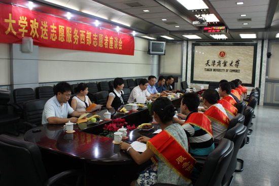 7 月15 日 , 我校大學生志愿服務西部計劃活動座談會暨大學生志愿服務西部計劃畢業生送行儀式在信息交流中心多功能會議室舉行。校黨委副書記楊萬義、校團委書記王罡、研究生部副主任趙建洪、志愿者所在學院的黨總支副書記和赴西部及地震災區服務同學參加座談會。