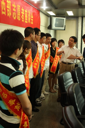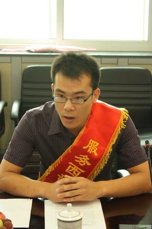 座談會首先由校團委書記王罡介紹近幾年我校開展西部計劃活動的情況。我校大學生志愿服務西部計劃 2004 年正式啟動,此次是第六批志愿服務西部的大學畢業生,六年來共有 51 名畢業生到西部服務。座談會上,赴西部及地震災區服務的志愿者表達了響應黨中央的號召,到西部去,到基層去,到祖國和人民最需要的地方去,為祖國建功立業,用自己的青春譜寫了最壯麗詩歌的決心。趙建洪副主任及各學院黨總支副書記也對志愿者進行了叮囑,要保持良好的心態,冷靜處理工作和生活遇到的問題。