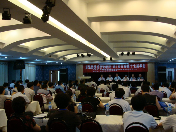 7 月 1 8 日至 20 日,由我校商學院承辦,天津農學院經濟管理系協辦的第十七屆普通高校經濟管理院(系)協作會在天津市立達大酒店隆重舉行,來自全國各地的 36 所普通高校經濟管理院系、天津經濟技術開發區、天津市東麗區科委的教授、專家、學者以及中國鐵道出版社、經濟科學出版社、機械工業出版社等出版單位的近 130 名代表參加了這次盛會。