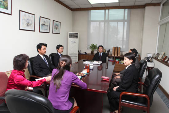 9月6 日下午,劉書瀚校長會見了日本京都文教大學西本勝己先生等 3 人,雙方進行了友好會談。