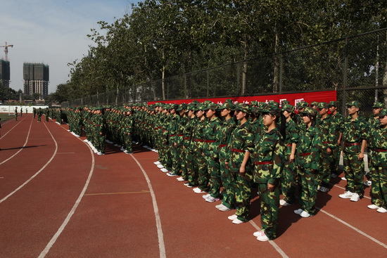 9 月 9 日上午 8 : 00 , 2009 級全體學生與武警六支隊一大隊 120 名官兵在校運動場見面,由此拉開了 2009 級學生軍訓的序幕。今年我校參加軍訓的 2009 級 3900 多名學生按照 4 個訓練營、 103 個訓練排的編制,在校內六個場地內進行訓練。 軍訓是大學生的必修課,是法律規定在校期間必須履行的光榮義務。國家教育部、總參謀部、總政治部專門頒發并多次修訂了《高等學校學生軍訓教學大綱》,對軍訓原則、內容、時間、方法等做了詳細規定,為組織實施軍訓提供了基本遵循。在大學生中開展軍訓工作,是學校全面貫徹黨的教育方針,推進素質教育,培育“四有”新人的重要手段,對于大學生成長成才有著重要而深遠的意義。同時,組織大學生軍訓,是強化全民國防觀念的必然要求和加強國防建設的客觀需要,也是提高學生綜合素質的有效途徑。 2009 級全體學生表示將珍惜這次軍訓機會,繼承和發揚革命傳統,努力提高思想政治覺悟;認真學習,扎實掌握軍事技能,努力強化國防觀念和責任意識;嚴格自律,自覺刻苦訓練,不斷磨煉意志品質;團結協作,積極創造和諧氛圍,圓滿完成訓練任務,以優異的成績展現新一代大學生良好的精神風貌。