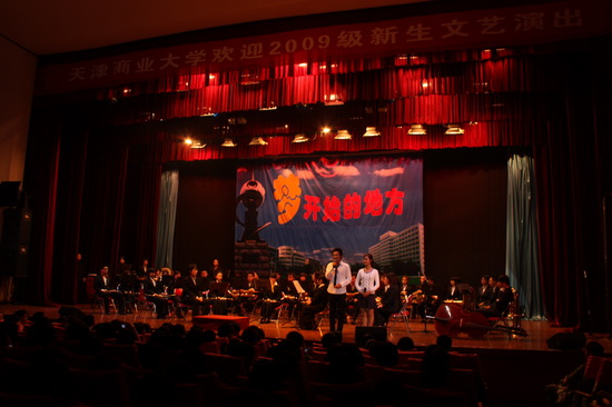 9 月 16 日 下午,由共青團(tuán)天津商業(yè)大學(xué)委員會(huì)主辦、天津商業(yè)大學(xué)星海藝術(shù)團(tuán)承辦的歡迎 2009 級(jí)新生文藝演出在科學(xué)會(huì)堂舉行,校黨委副書記楊萬義與新生共同觀看了演出。