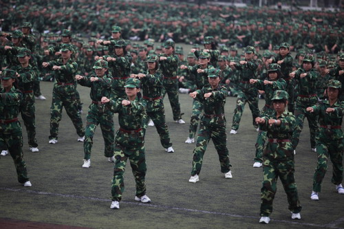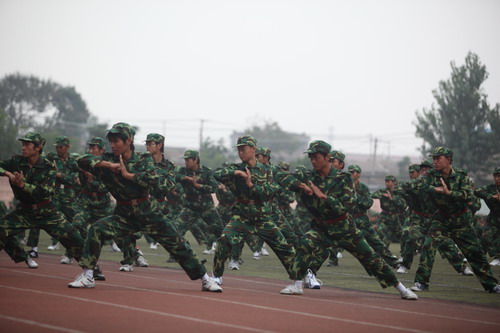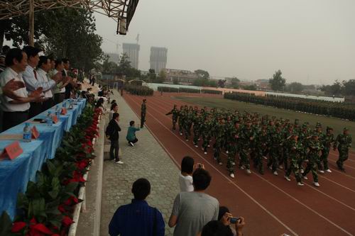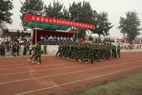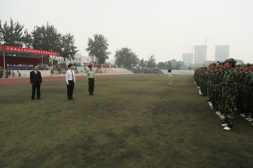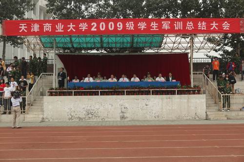 9 月 18 日 上午, 2009 級學生軍訓總結大會在校運動場舉行。 校黨委書記陳學奇、副書記楊萬義,副校長魏胤亭,教務處處長于義良,武警六支隊一大隊教導員王峰、副大隊長劉曉偉出席了總結大會,各學院黨總支分管學生工作的書記、副書記在主席臺就座,大會由校武裝部部長賈青主持。校黨委書記陳學奇在劉曉偉和賈青的陪同下 檢閱了參加軍訓的 2009 級全體學生。校黨委副書記楊萬義講話。在總結大會上,受訓學生進行了分列式、擒敵術表演,武警官兵進行了格斗拳表演。