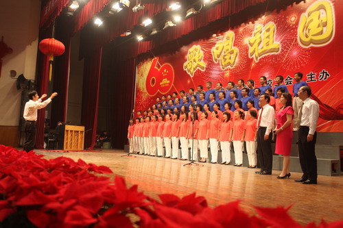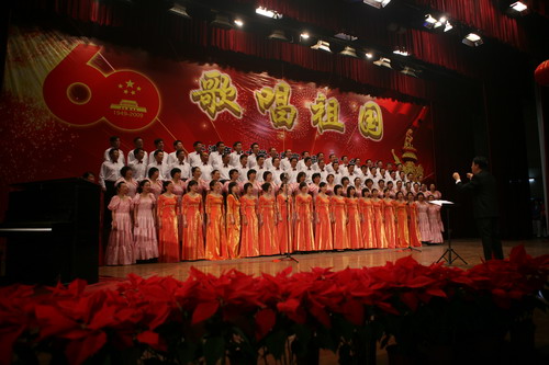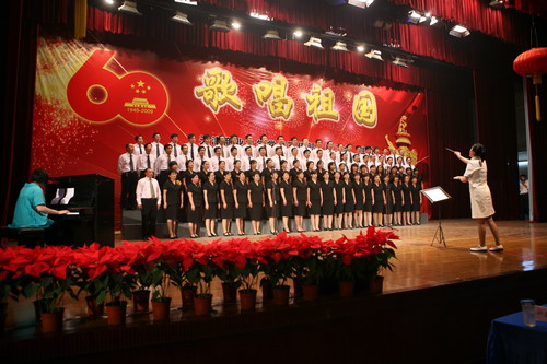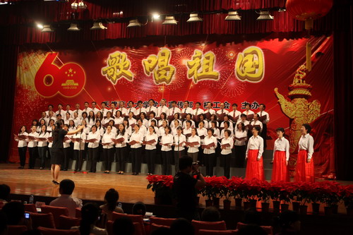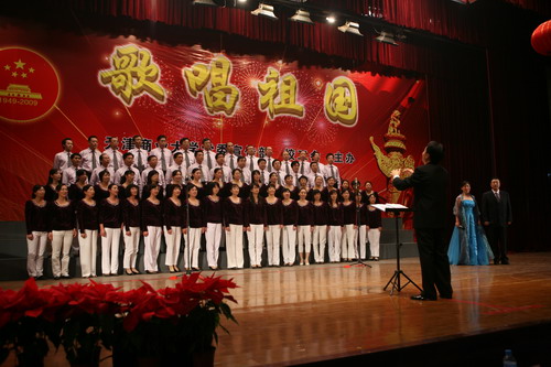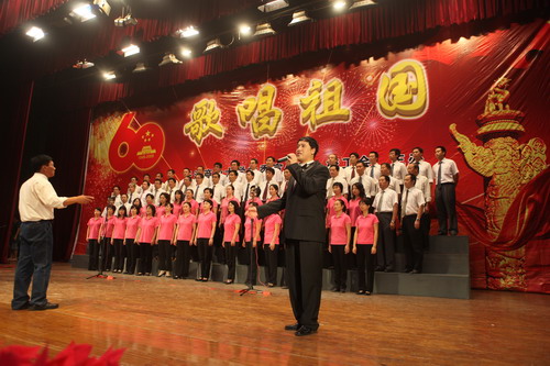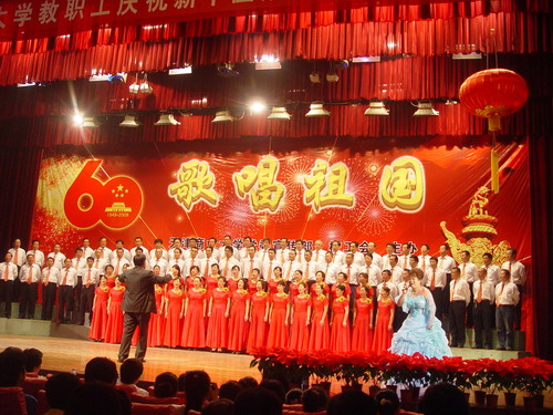 9 月 30 日 下午,由我校黨委宣傳部、工會主辦的教職工慶祝新中國成立 60 周年歌詠比賽在科學會堂隆重舉行。校黨委書記陳學奇、副書記楊萬義、史習紅、副校長魏胤亭、馬三津等領導出席大會。