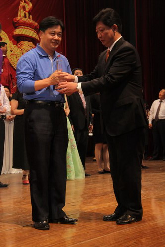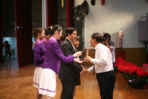 最后,校領導為獲獎單位頒發了獎杯。大會在校領導與全場教職工共同高歌《歌唱祖國》的歌聲中落下帷幕。