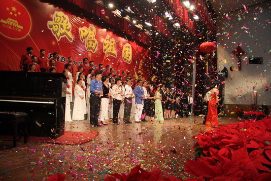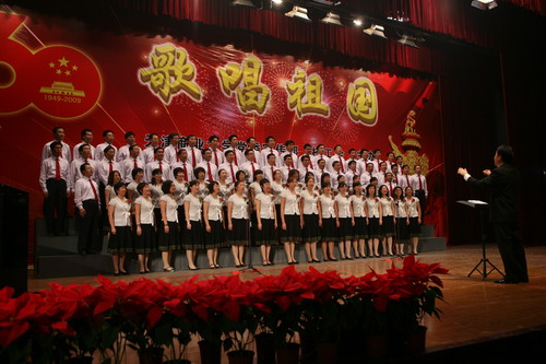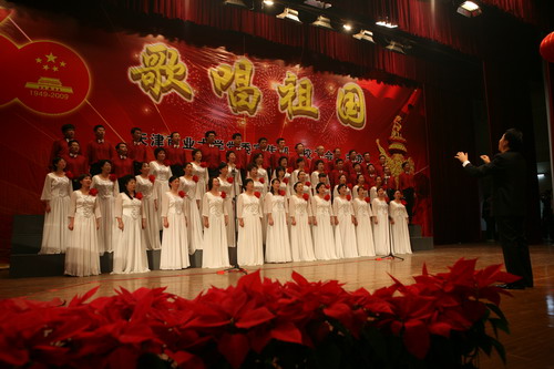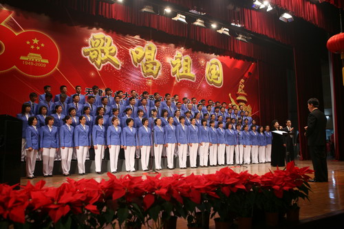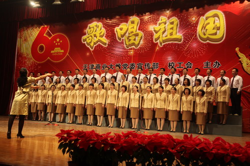 在新中國60華誕到來之際舉行全校教職工歌詠比賽,既是獻給祖國母親的一份祝福,更激發了廣大教職工的愛國熱情,把滿腔熱忱化作投身教學、科研和管理工作的實際行動,為學校的發展建設,在各自的工作崗位上努力貢獻自己的一份熱情、一份力量。服務天津經濟社會發展,以優異的業績回報偉大的祖國。