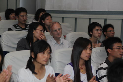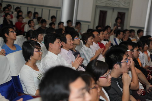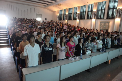 10 月 1 日 上午,我校1200余名假期留校學生在學術交流中心和科學會堂收看了中華人民共和國成立60周年慶典大會和閱兵式 。校黨委書記陳學奇、副校長魏胤亭、各專業學院分管學生工作的書記、副書記、輔導員及學工部、團委全體工作人員與同學們共同收看了國慶慶典活動電視直播。