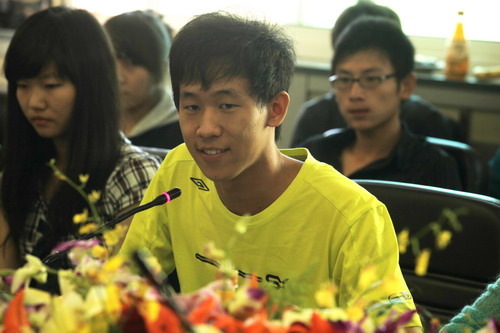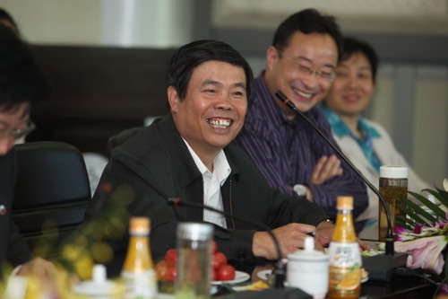 座談會在輕松愉悅的節日氛圍中進行,在校學生代表商學院溫切姆·周慶雨、 TUC-FIU 合作學院冶娜、機械工程學院趙元匯、法學院愛麗美熱·艾海提等四位同學首先在會上進行典型發言。同學們非常高興與學校領導老師共度中秋,對學校為學生成長進步所做努力表示感謝,并暢談了自己對祖國繁榮、家鄉變化、學校發展、個人進步的感受。隨后,師生在融洽的氛圍中進行了充分的交流,對祖國 60 年發展所取得的偉大成績抒發了自豪之情,對學校 30 年建設發展所取得的不斷進步感到驕傲。